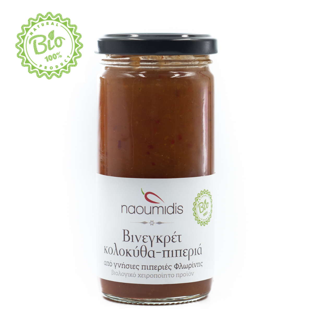 Red genuine Florina pepper and red pumpkin with spices, lemon, sugar, salt, vinegar and must (petimezi) from 100% black and sour grapes. Contains traces of celery. May contain traces of sulfites. Handmade product of organic farming. Pasteurized, no preservatives. Served with cheeses, green salad, vegetables and meats. Glass 260 packgr,212gr
