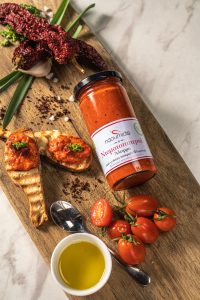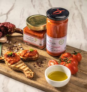 Γνήσια πιπεριά Φλωρίνης, ντομάτα, άγριο σκόρδο, θυμάρι, βασιλικό, αλάτι και έξτρα παρθένο ελαιόλαδο. Χειροποίητο προϊόν βιολογικής γεωργίας. Παστεριωμένο, χωρίς συντηρητικά. Σερβίρεται ως κρύο ή ζεστό ορεκτικό, συνοδευτικό σε φαγητά, άλλειμα σε σάντουιτς, πάνω σε ζυμαρικά ή ρύζι. Ιδανικό για πίτσα. Γυάλινη συσκευασία 260gr.